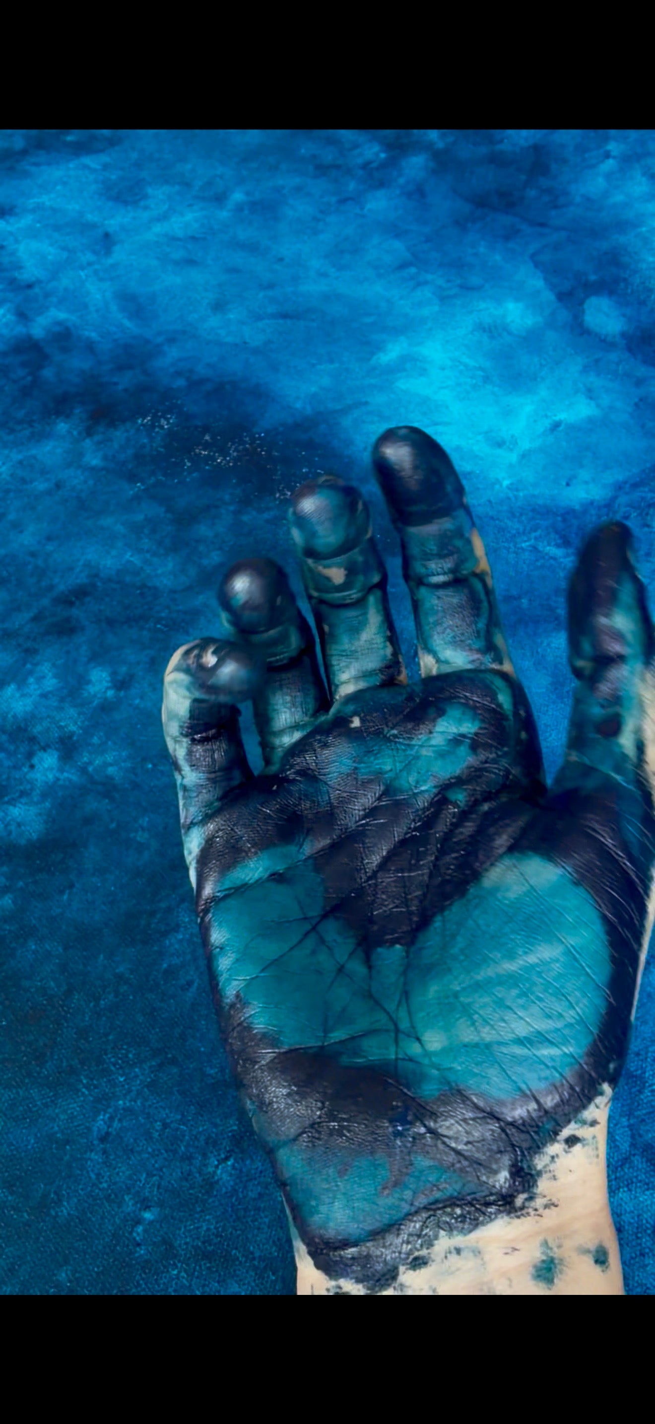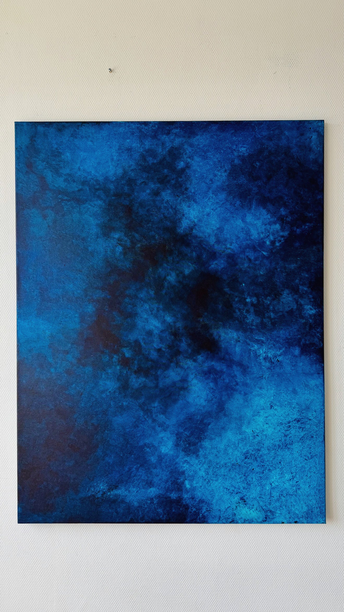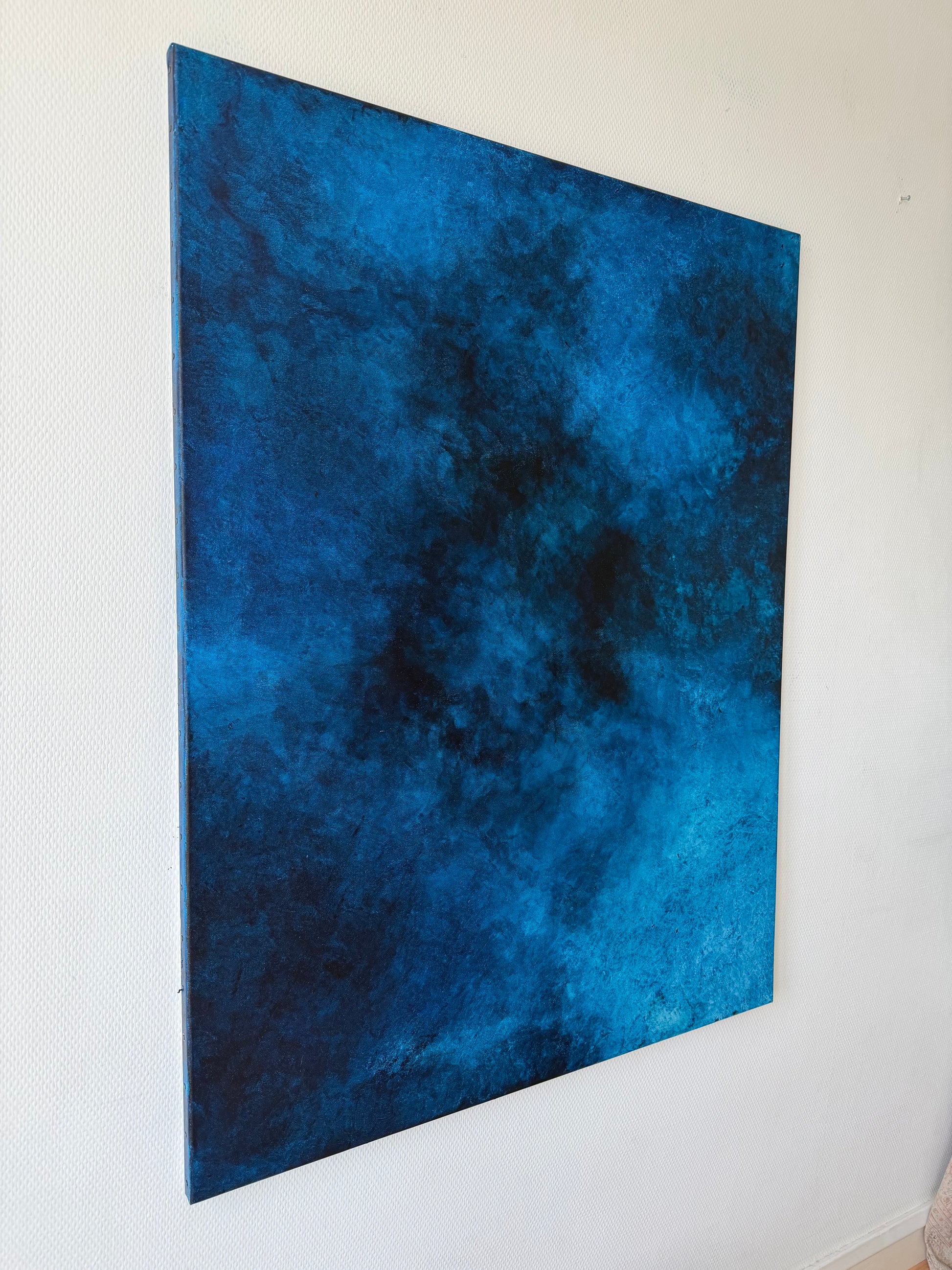 J’ai choisi de non vernir mes toiles pour laisser l’œuvre continuer à vivre et bouger comme l’océan, pour moi vernir un tableau sert à figer le moment, le temps, ce qui n’est pas dans mon processus de réalisation.