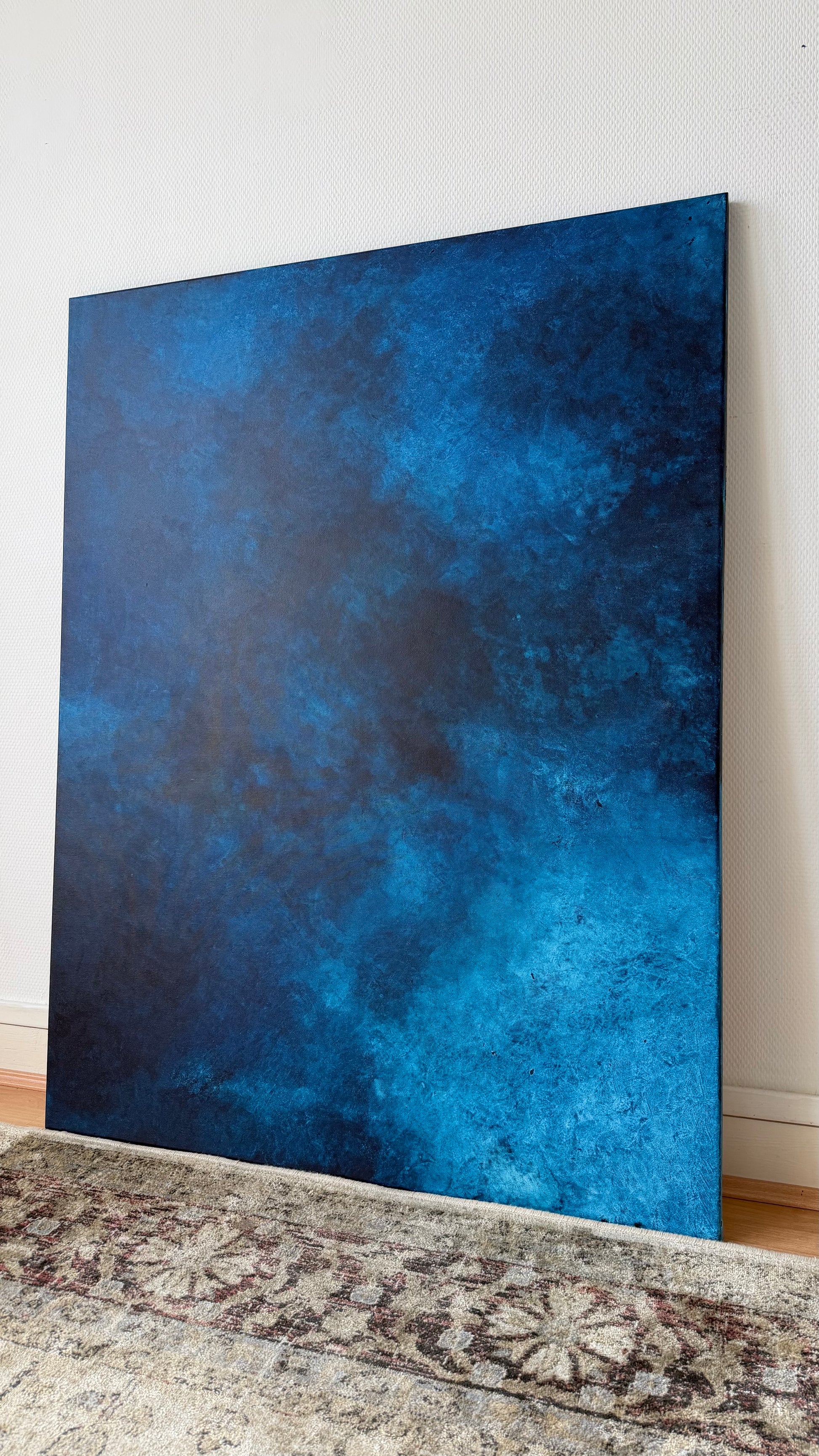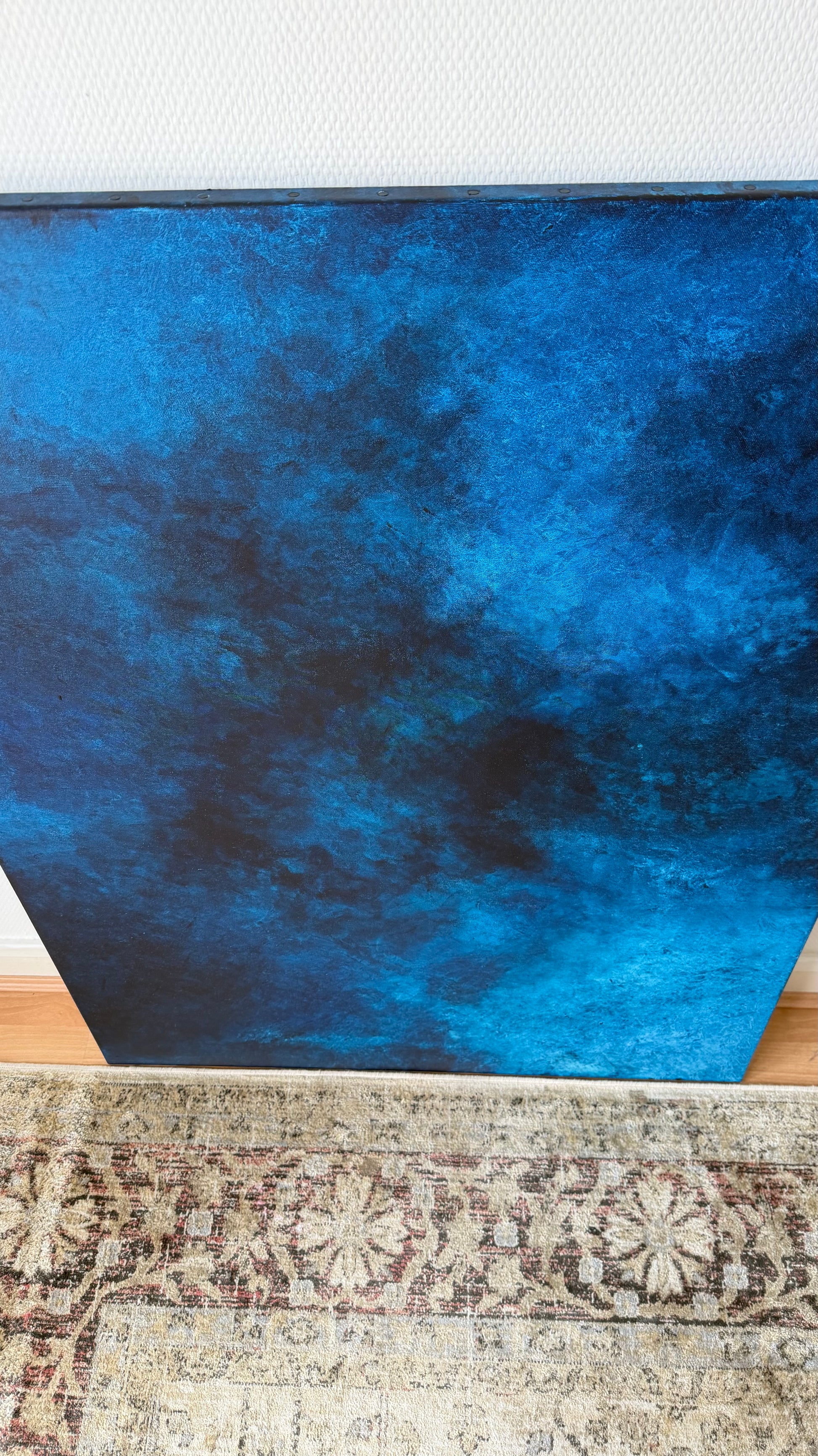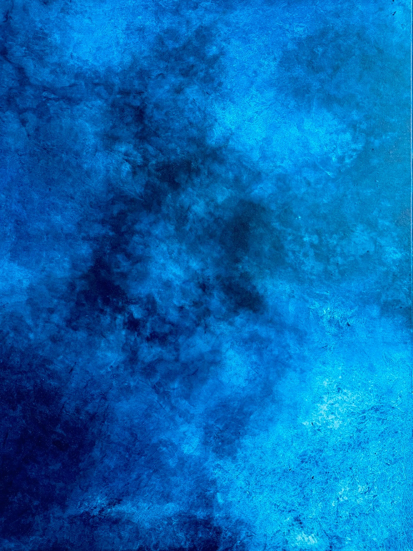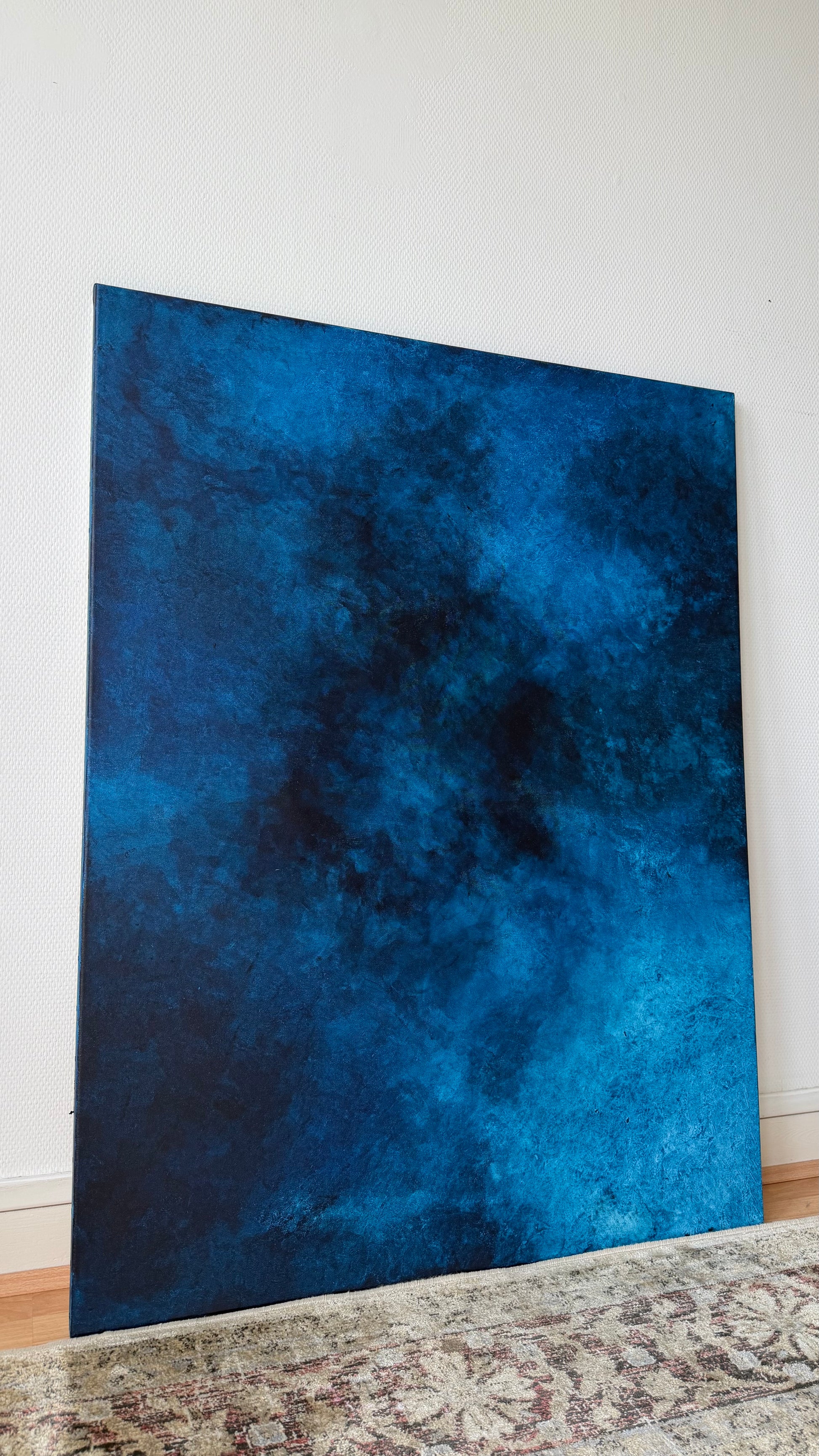 J’ai choisi de non vernir mes toiles pour laisser l’œuvre continuer à vivre et bouger comme l’océan, pour moi vernir un tableau sert à figer le moment, le temps, ce qui n’est pas dans mon processus de réalisation.