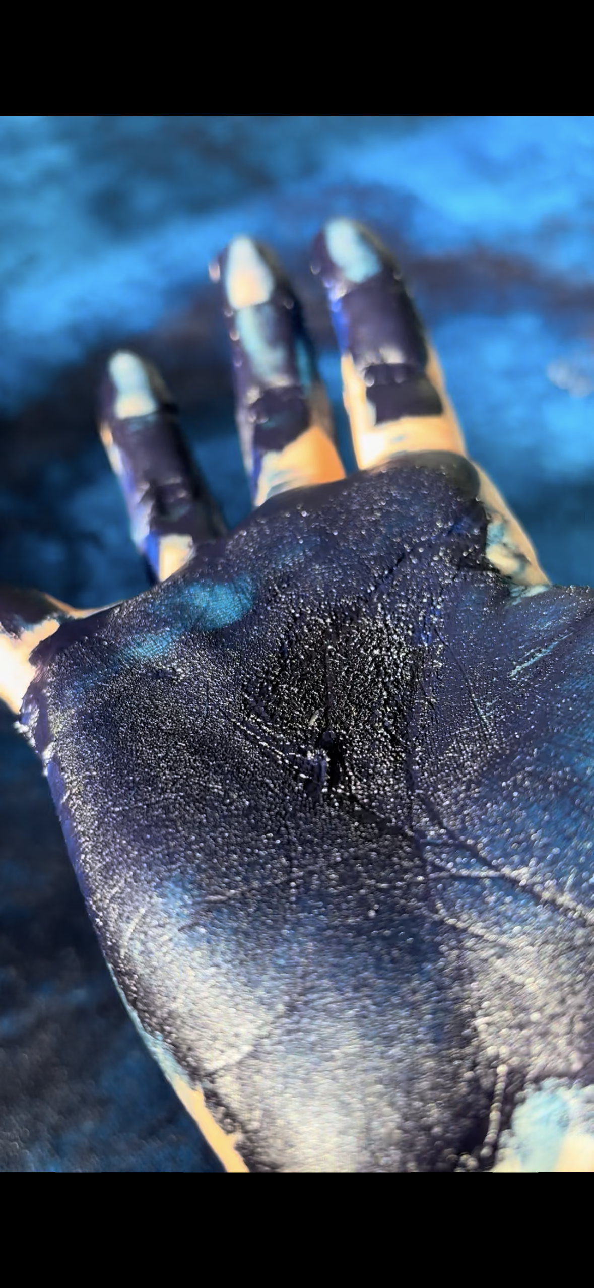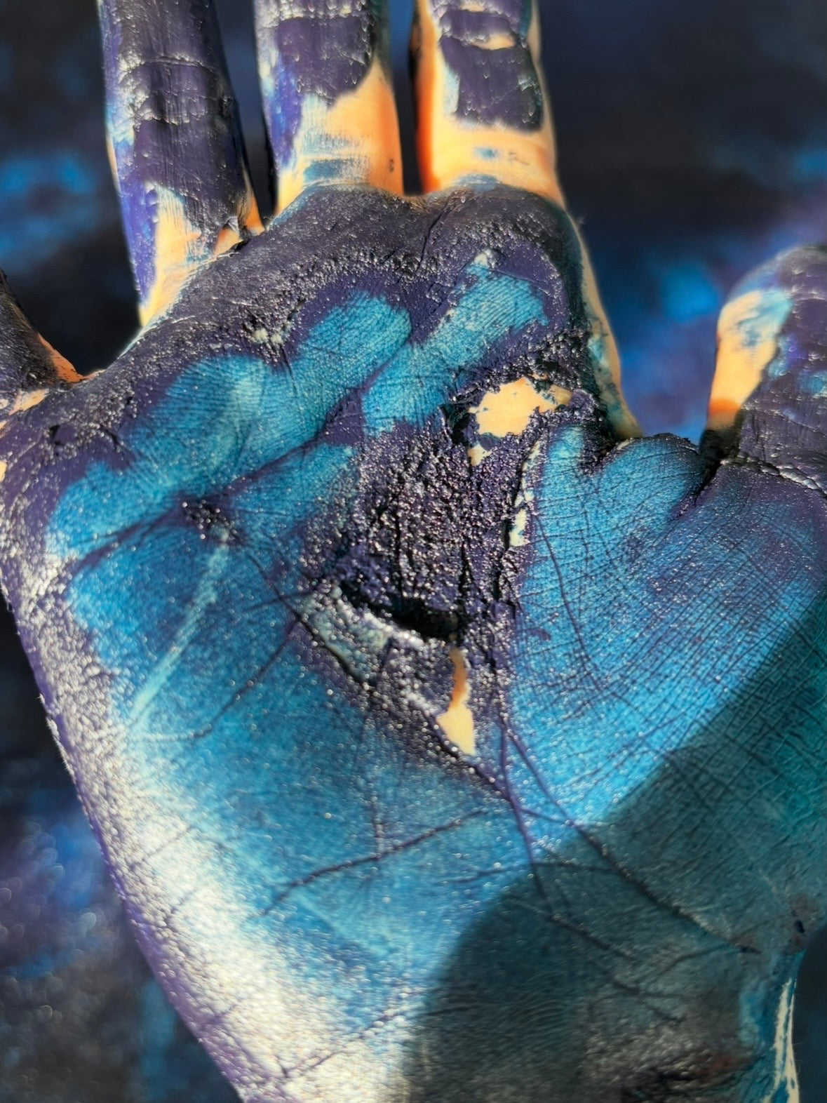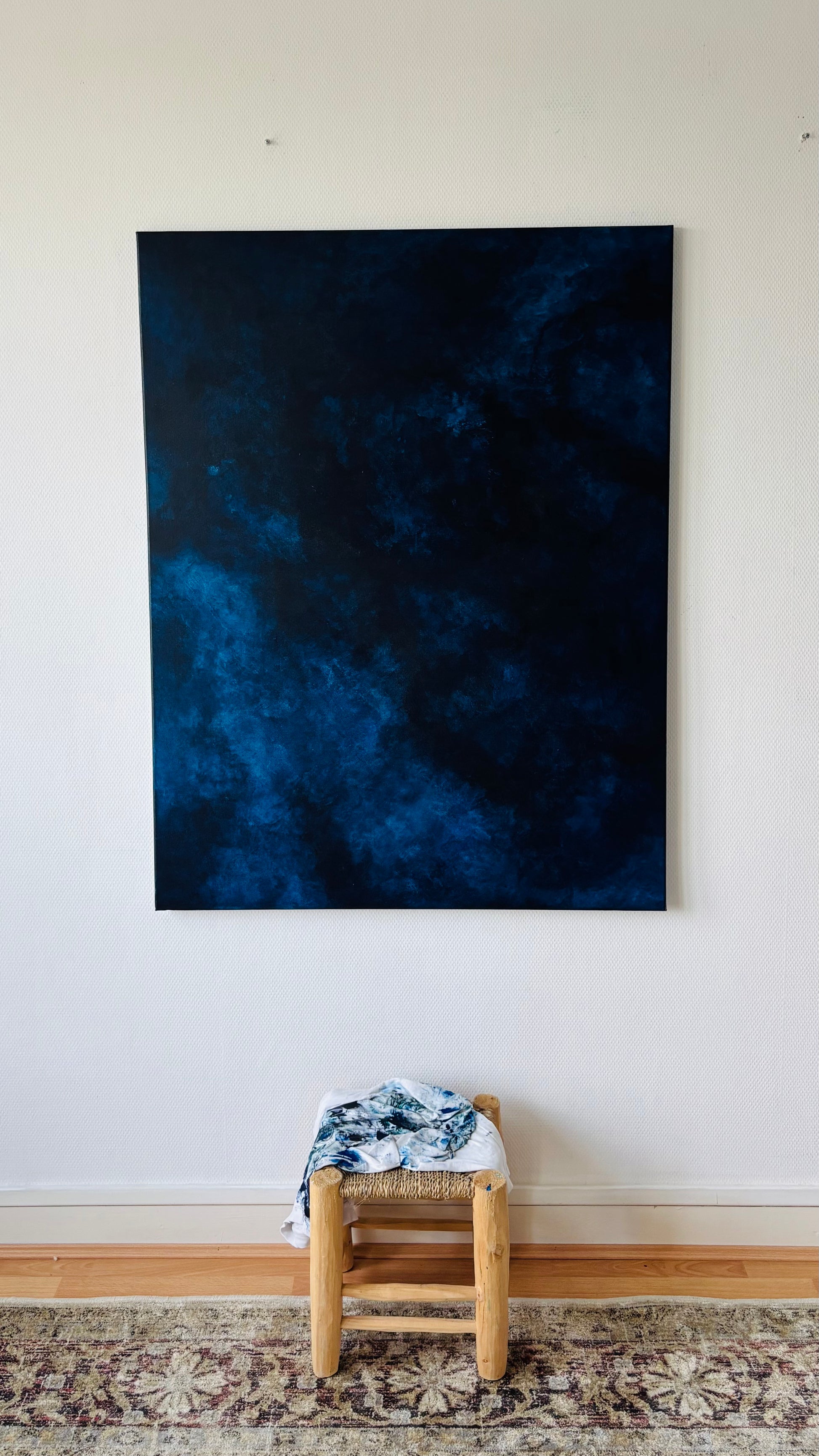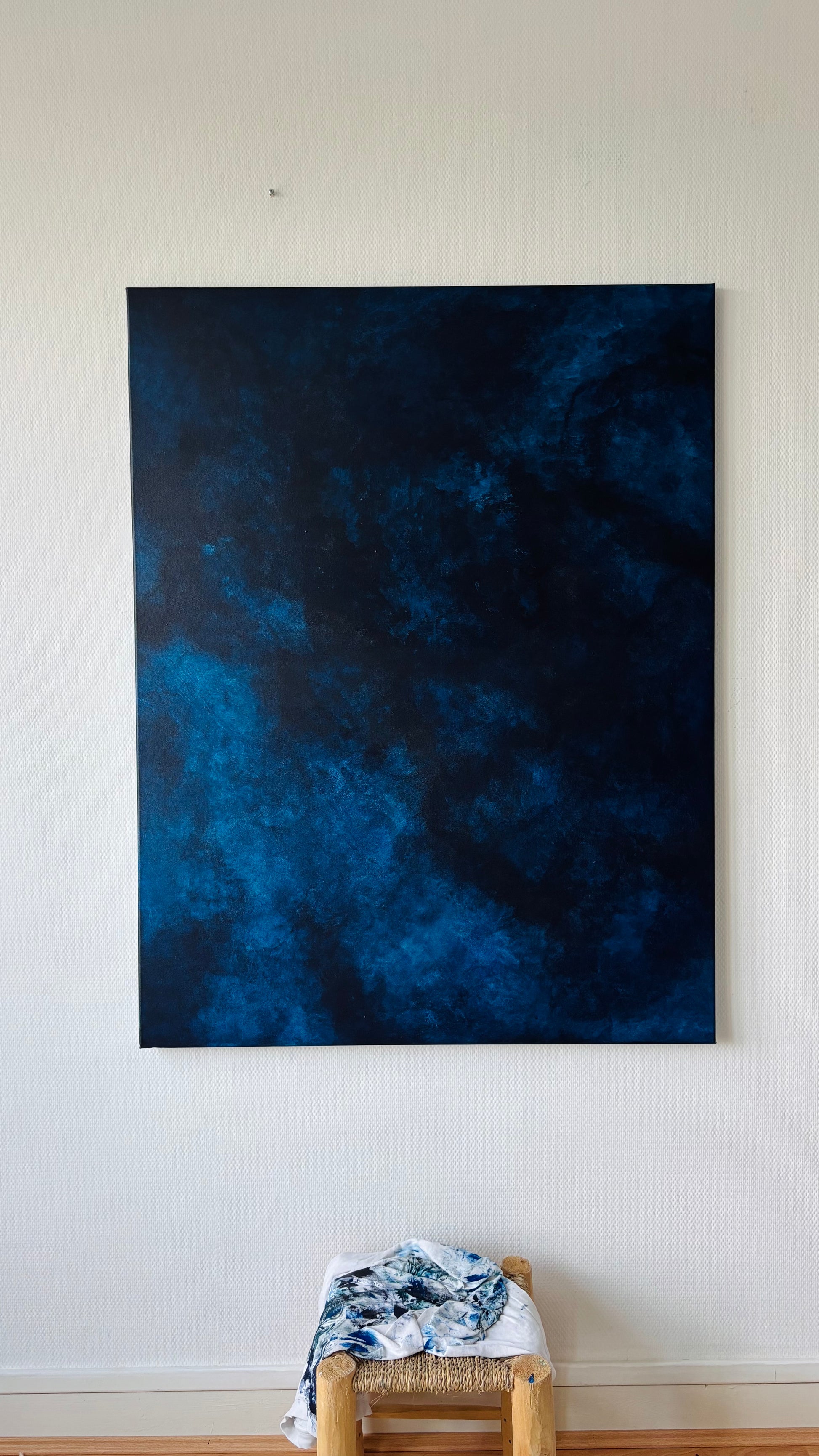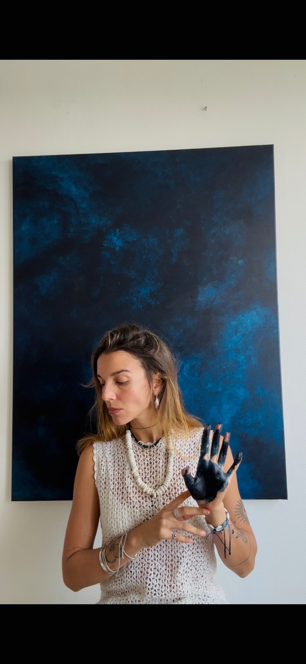 J’ai choisi de non vernir mes toiles pour laisser l’œuvre continuer à vivre et bouger comme l’océan, pour moi vernir un tableau sert à figer le moment, le temps, ce qui n’est pas dans mon processus de réalisation.